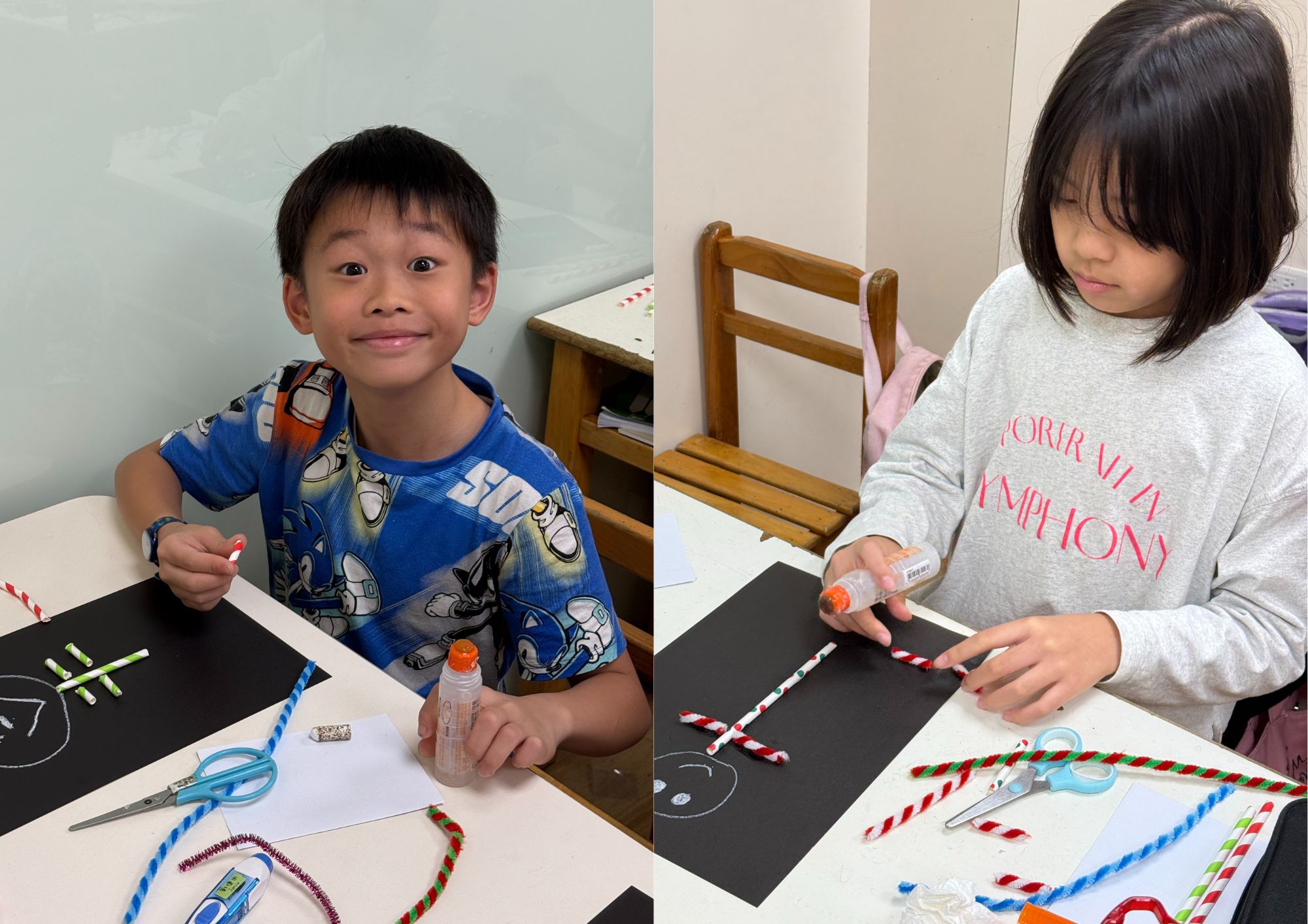 ▲老師說用吸管可以做出骨頭人,猜猜看我有沒有成功?