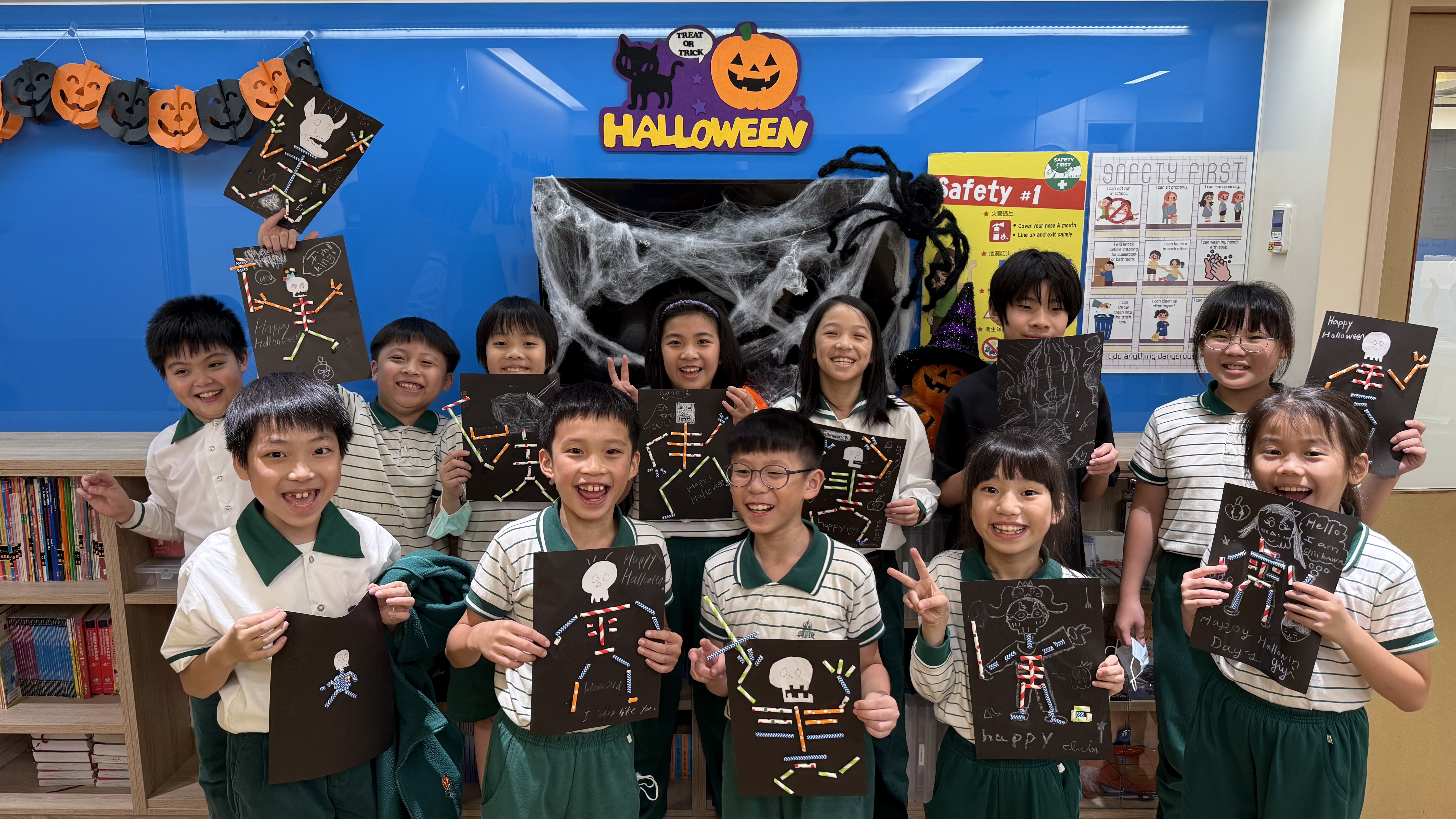 ▲老師帶著我們一起去外面Trick or Treat,我拿到好多的糖果,實在是太開心了!