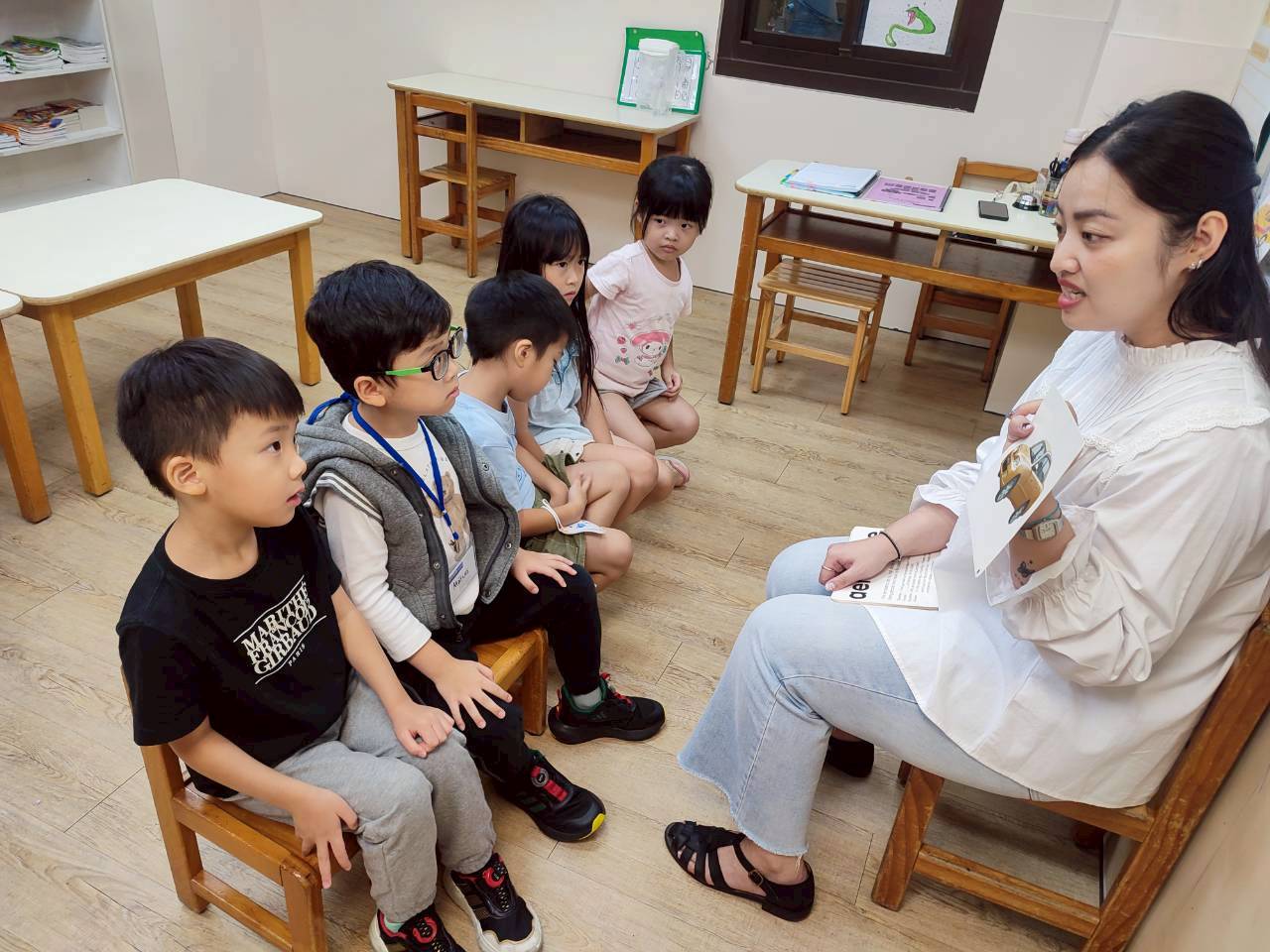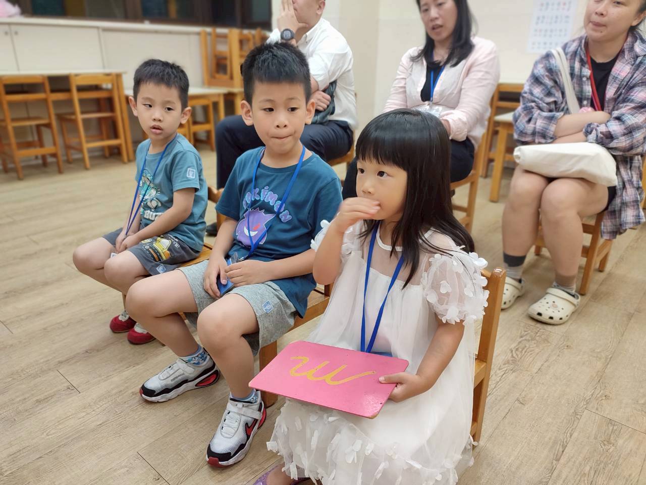 ▲孩子用感官學習模仿老師的發音建立學習的自信~