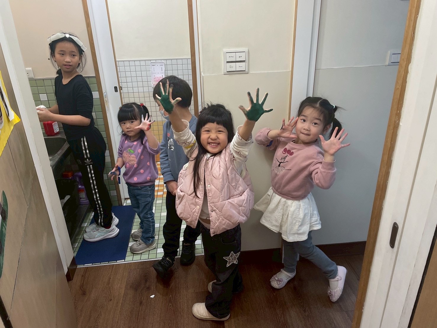 排隊洗洗手,也認識新同學的一天。