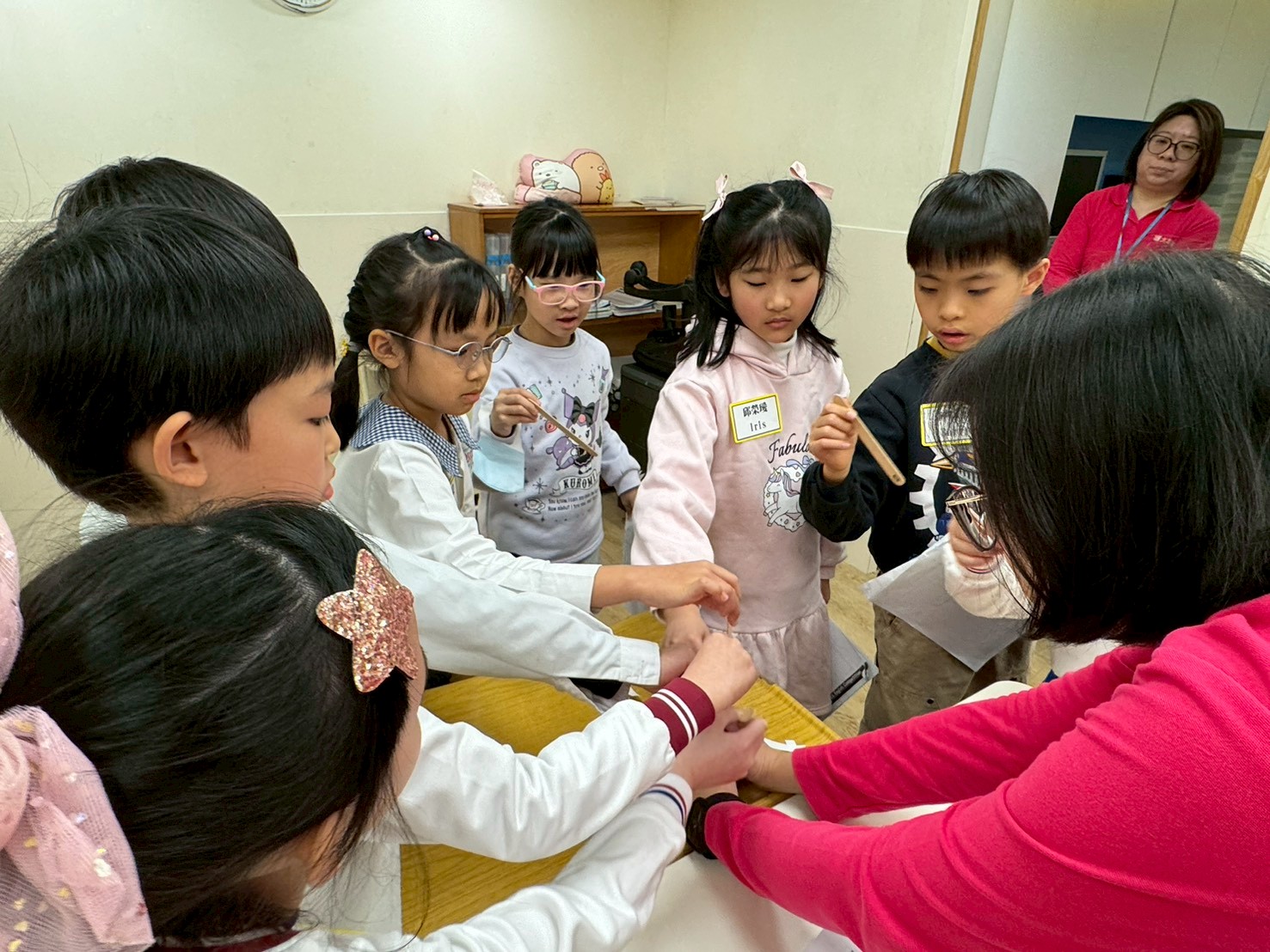 我們圍在一起抽英文演講的題目,好緊張又期待,等一下要勇敢上台大聲唸出來!