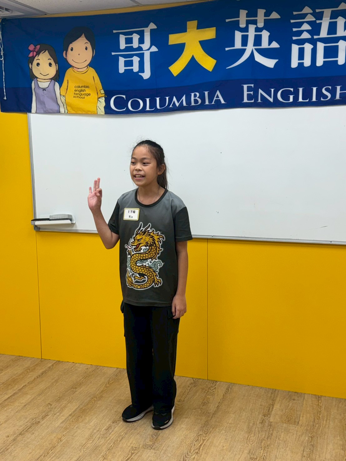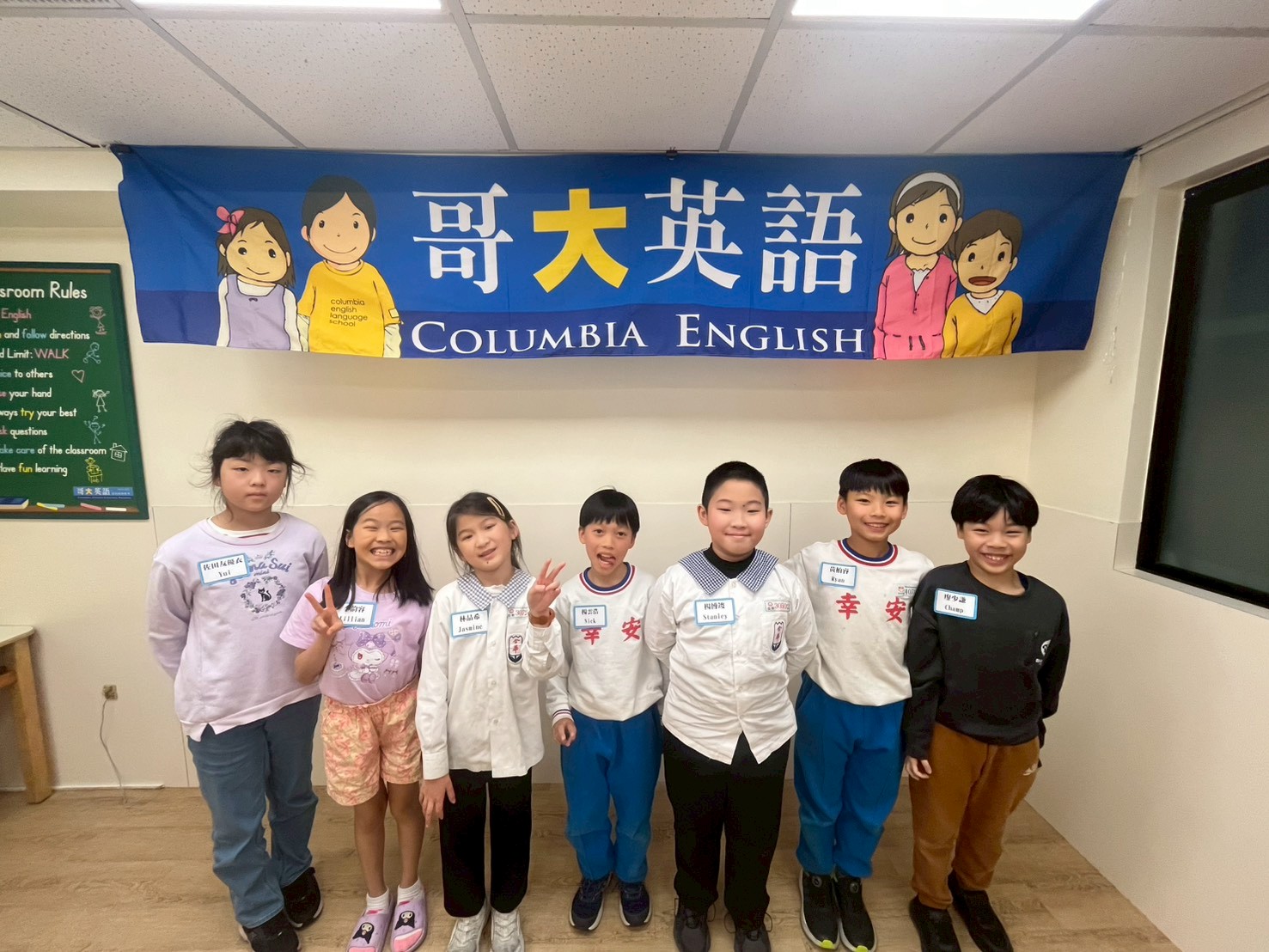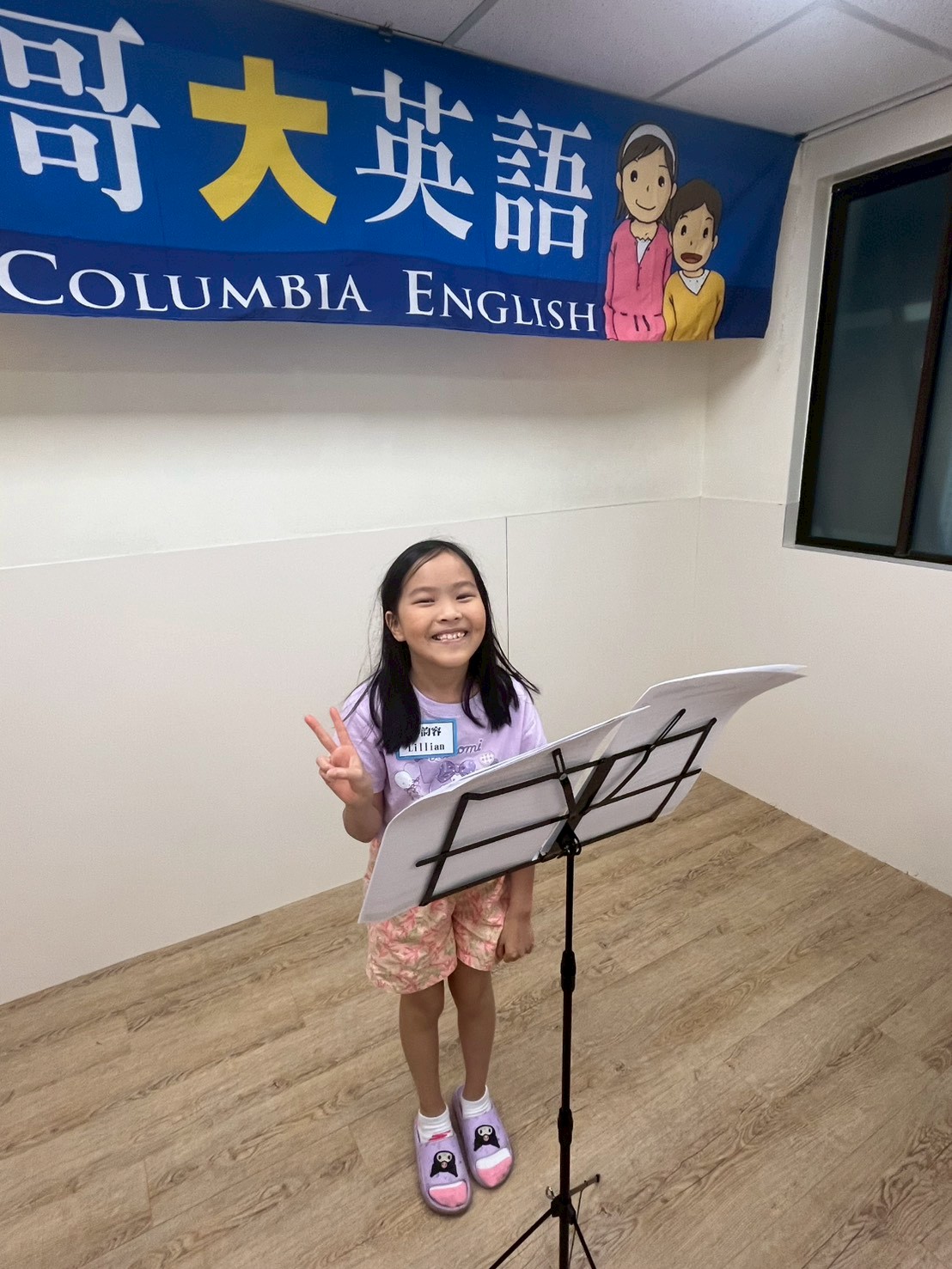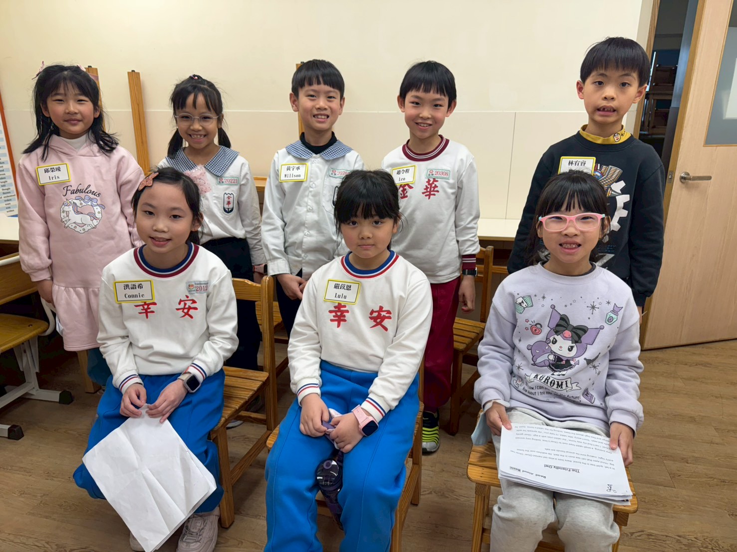 我們拿著英文演講稿坐好,準備輪流上台,心裡有點緊張但也很期待表現~