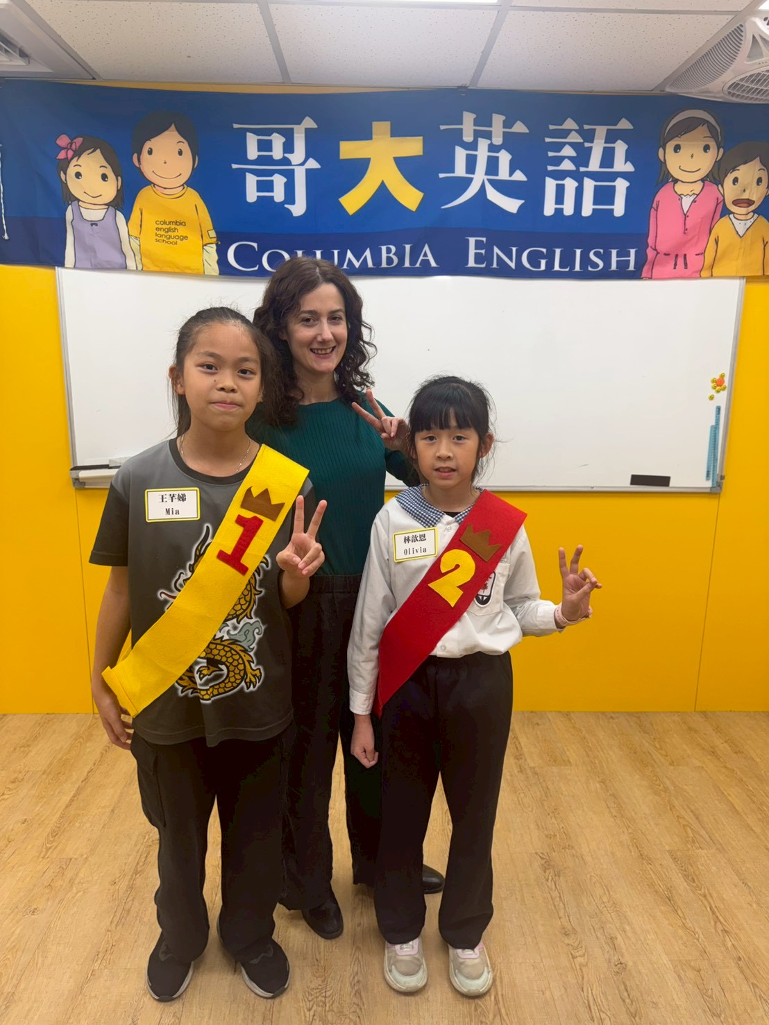謝謝爸爸、媽媽、老師辛苦地幫我複習,獲得第一名和第二名,真開心!