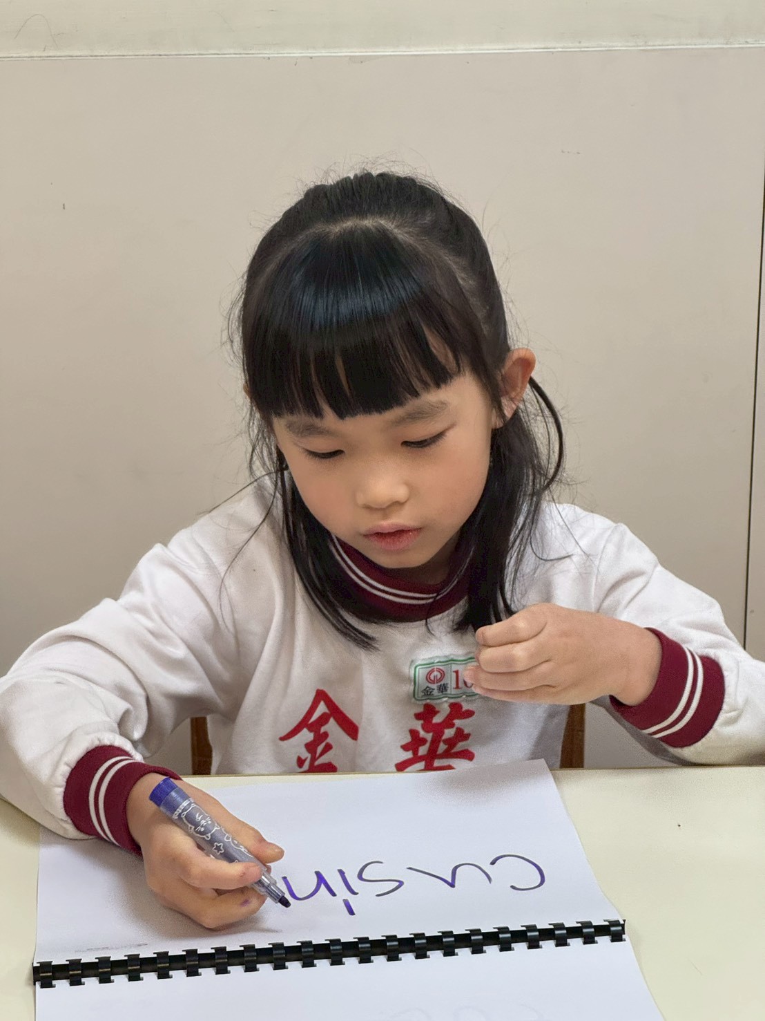 大家絞盡腦汁的努力想把老師唸讀出來的單字拼出來...
