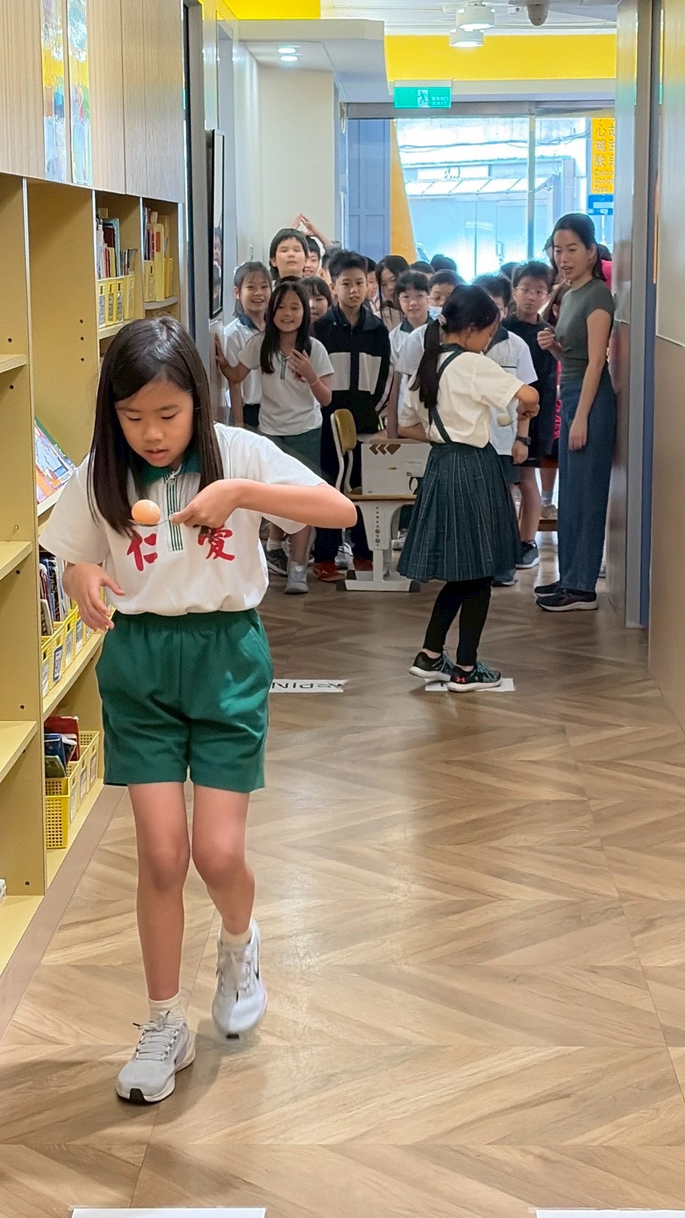 一起小心拿好蛋往中點邁進,看看哪組會勝出吧~