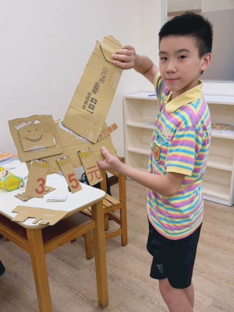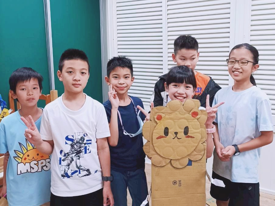 我們的紙箱獅子可愛嗎?當作遊戲道具真不錯。